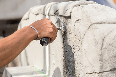 砂やセメントなどを混ぜた特殊なモルタルで、自然の石や岩、レンガなどをリアルに再現するモルタル造形。